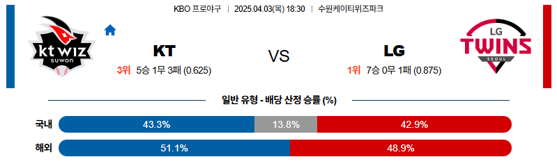 [벳조이 스포츠 분석]04월03일 KT:LG KBO 분석 및 예측