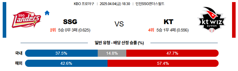 [벳조이 스포츠 분석]04월04일 SSG:KT KBO 분석 및 예측