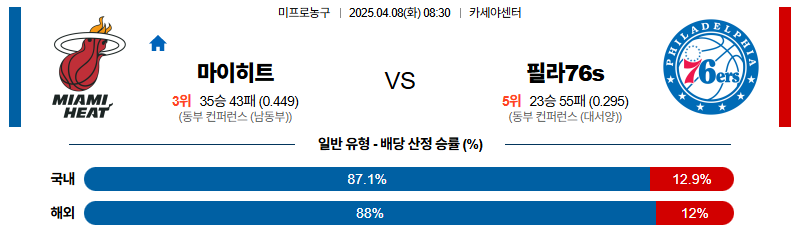 [벳조이 스포츠 분석]04월08일 마이애미:필라델피아 NBA 분석 및 예측
