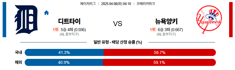 [벳조이 스포츠 분석]04월08일 디트로이트:뉴욕양키스 MLB 분석 및 예측