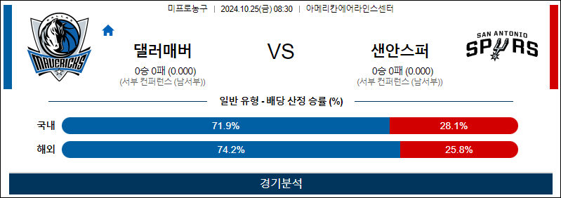 [벳조이]10월 25일 댈러스 vs 샌안토니오 【NBA】