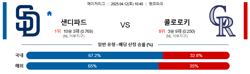 [벳조이 스포츠 분석]04월12일 샌디에이고:콜로라도 MLB 분석 및 예측