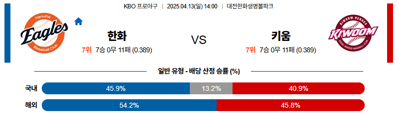 [벳조이 스포츠 분석]04월13일 한화:키움 KBO 분석 및 예측
