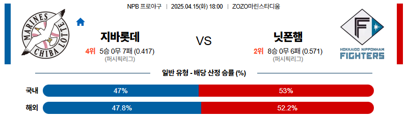 [벳조이 스포츠 분석]04월15일 지바롯데:니혼햄 NPB 분석 및 예측