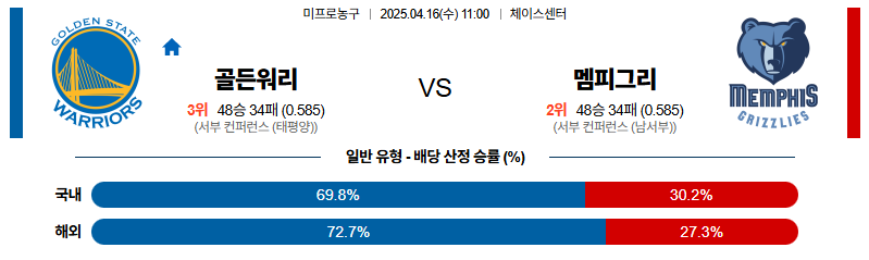 [벳조이 스포츠 분석]04월16일 골든스테이트:멤피스 NBA 분석 및 예측