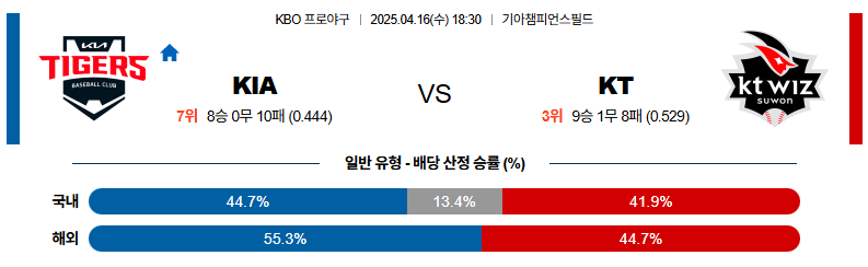 [벳조이 스포츠 분석]04월16일 KIA:KT KBO 분석 및 예측