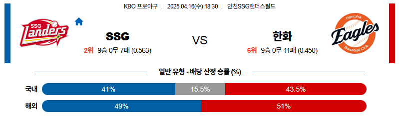 [벳조이 스포츠 분석]04월16일 SSG:한화 KBO 분석 및 예측