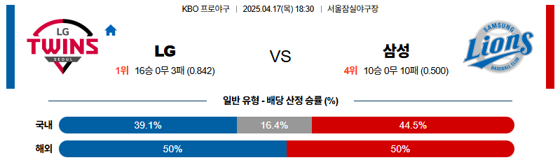 [벳조이 스포츠 분석]04월17일 LG:삼성 KBO 분석 및 예측