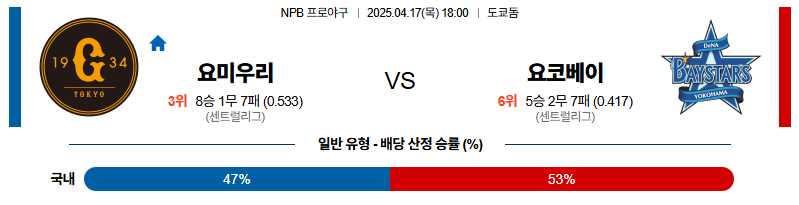 [벳조이 스포츠 분석]04월17일 요미우리:요코하마 NPB 분석 및 예측