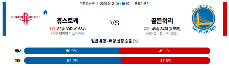 [벳조이 스포츠 분석]04월21일 휴스턴:골든스테이트 NBA 분석 및 예측