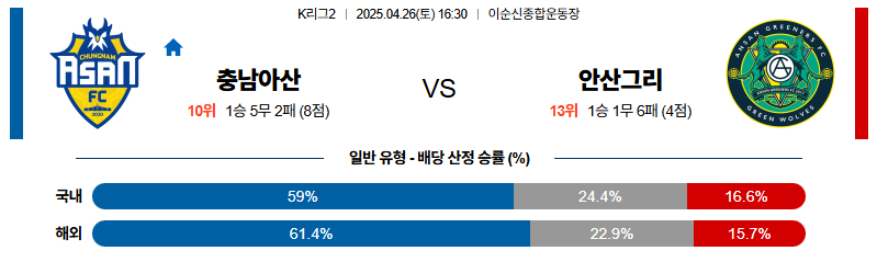 [벳조이 스포츠 분석]04월26일 충남아산:안산 K리그2 분석 및 예측