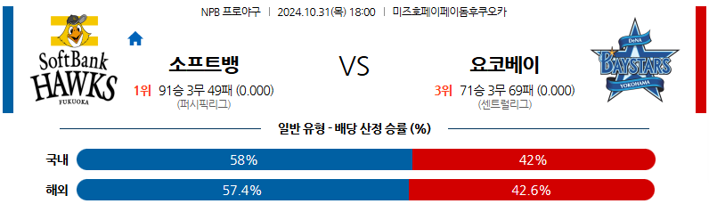 [벳조이]10월 31일 소프트뱅크 vs 요코하마 【NPB】