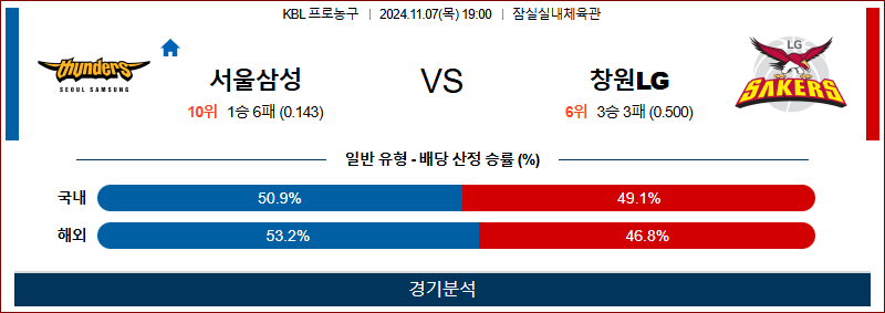 [벳조이]11월 07일 서울삼성 vs 창원LG 【KBL】