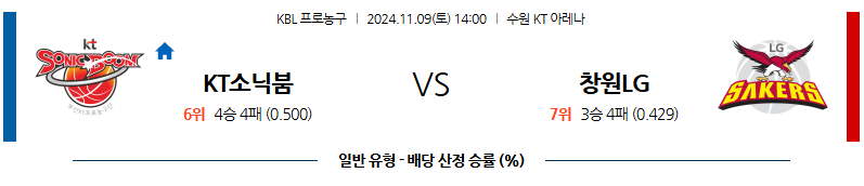 [벳조이]11월 09일 수원KT vs 창원LG 【KBL】