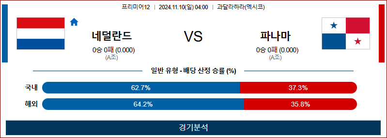 배당을 노리는 선택 =>네덜란드 핸디캡 승리