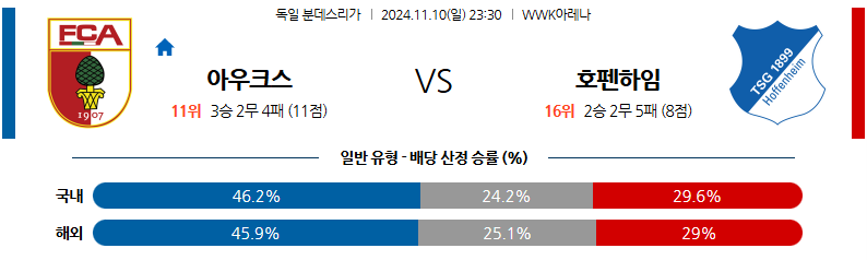 [벳조이]11월 10일 아우크스부르크 vs TSG 1899 호펜하임