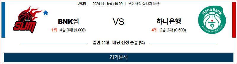 [벳조이]11월 11일 BNK썸 vs 하나은행 【WKBL】