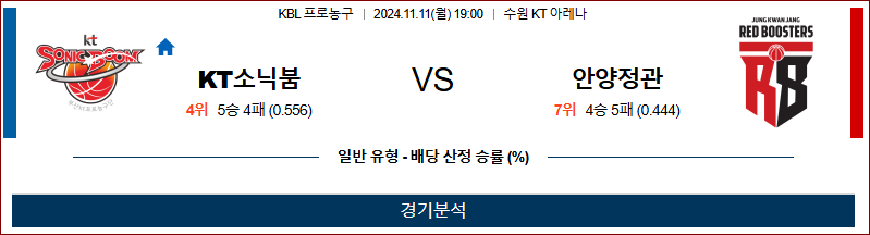 [벳조이]11월 11일 수원KT vs 안양정관장 【KBL】