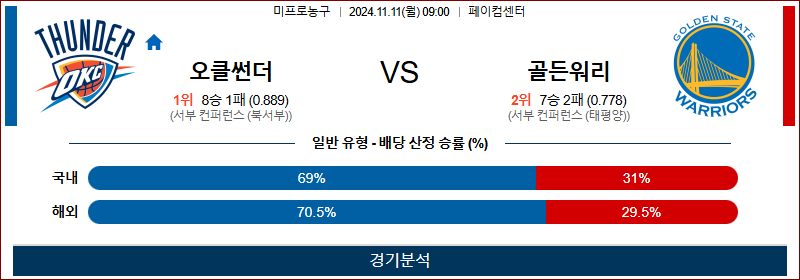 [벳조이]11월 11일 오클라호마 vs 골든스테이트 【NBA】