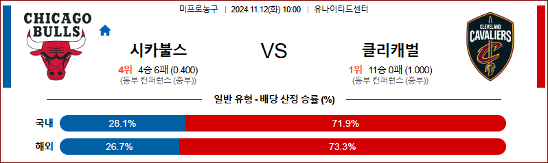 [벳조이]11월 12일 시카고 vs 클리블랜드 【NBA】