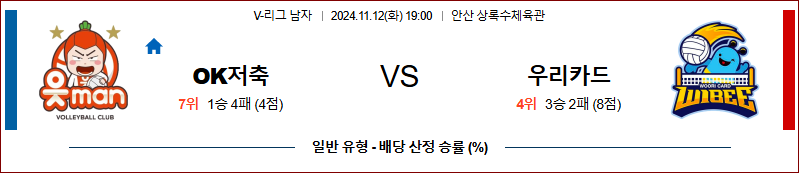 [벳조이]11월 12일 OK저축은행 vs 우리카드 【V리그】