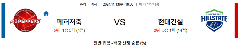 [벳조이]11월 13일 페퍼저축은행 vs 현대건설 【V리그】