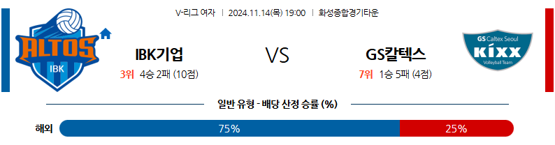 [벳조이]11월 14일 IBK기업은행 vs GS칼텍스 【V리그】
