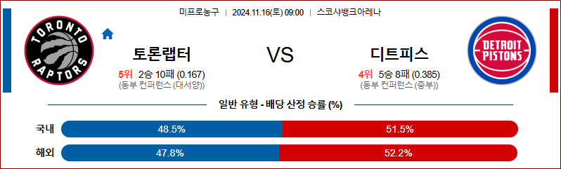 [벳조이]11월 16일 토론토 vs 디트로이트 【NBA】