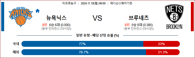 [벳조이]11월 18일 뉴욕닉스 vs 브루클린 【NBA】