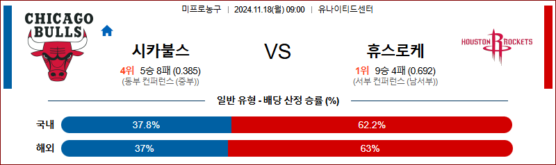 [벳조이]11월 18일 시카고 vs 휴스턴 【NBA】