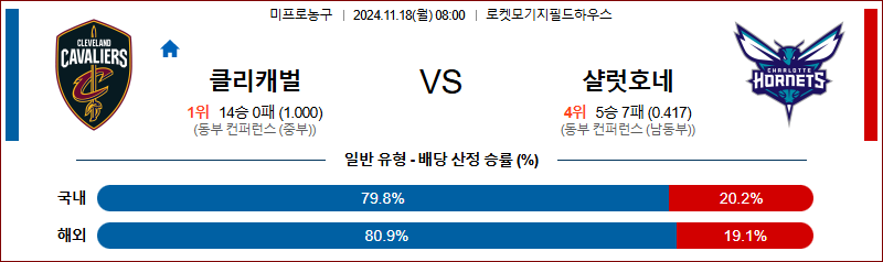 [벳조이]11월 18일 클리블랜드 vs 샬럿 【NBA】