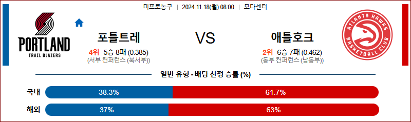 [벳조이]11월 18일 포틀랜드 vs 애틀란타 【NBA】