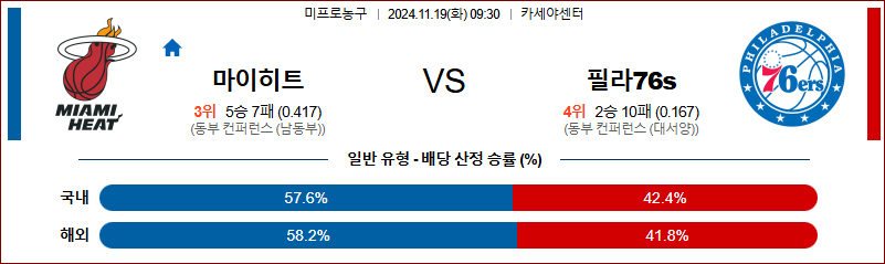 [벳조이]11월 19일 마이애미 vs 필라델피아 【NBA】