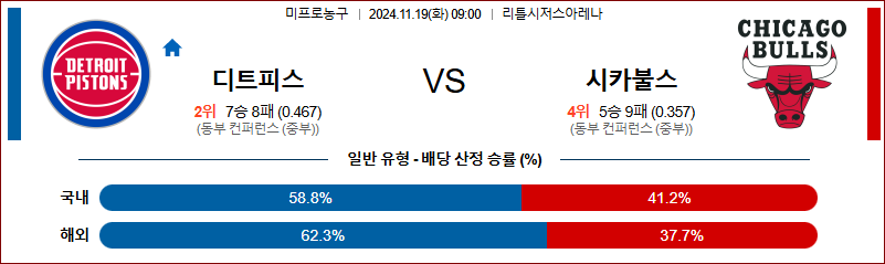 [벳조이] 11월 19일 디트로이트 vs 시카고 【NBA】