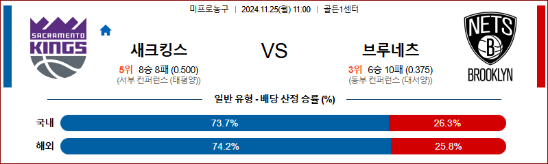 [벳조이]11월 25일 새크라멘토 vs 브루클린 【NBA】