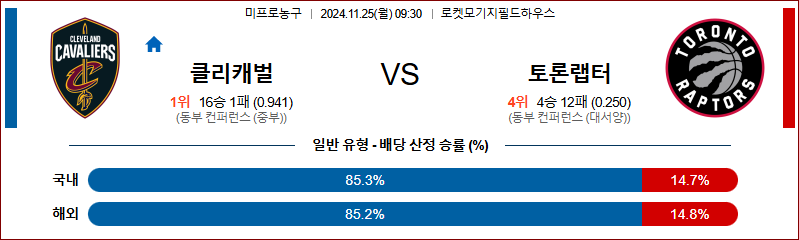 [벳조이]11월 25일 클리블랜드 vs 토론토 【NBA】