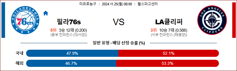 [벳조이]11월 25일 필라델피아 vs LA클리퍼스 【NBA】