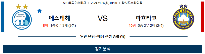 [벳조이]11월 26일 에스테그랄 vs 파흐타코 【AFC챔피언스리그】