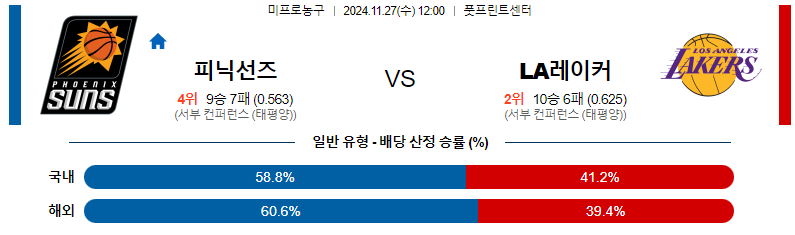 [벳조이]11월 27일 피닉스 선즈 vs LA레이커스 【NBA】