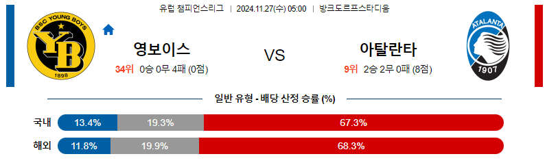[벳조이]11월 27일 영보이스 vs 아탈란타 【UEFA 챔피언스리그】