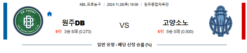 # 홈팀 : 원주DB(3승8패)