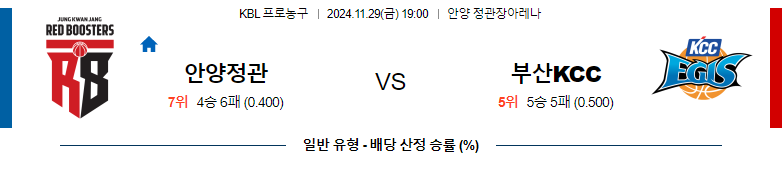 [벳조이]11월 29일 안양정관장 vs 부산KCC 【KBL】