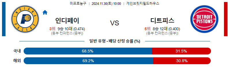 [벳조이]11월 30일 인디애나 vs 디트로이트 【NBA】