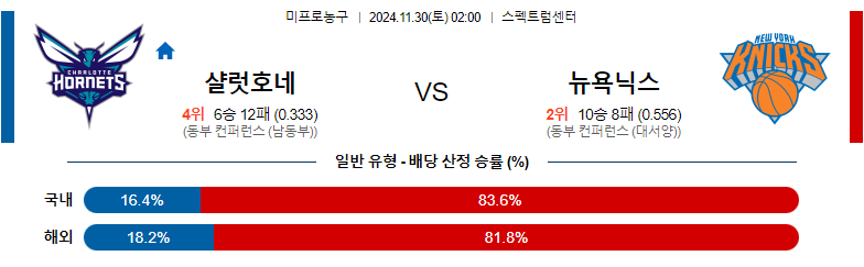 [벳조이]11월 30일 샬럿 vs 뉴욕닉스 【NBA】