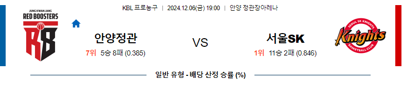 [벳조이]12월 06일 안양정관장 vs 서울SK 【KBL】