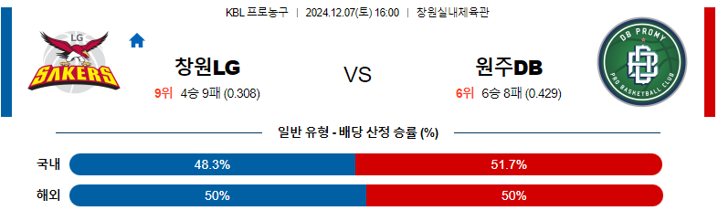 [벳조이]12월 07일 창원LG vs 원주DB 【KBL】