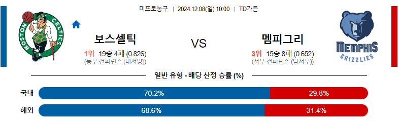 [벳조이]12월 08일 보스턴 셀틱스 vs 멤피스 그리즐리즈 【NBA】