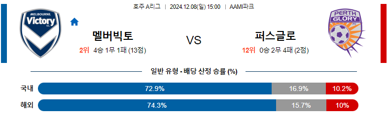 [벳조이]12월 08일 멜버른 빅토리 vs 퍼스 글로리 【호주 1부】