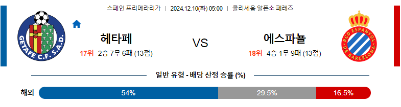 [벳조이]12월 10일 헤타페 vs 에스파뇰 【라리가】