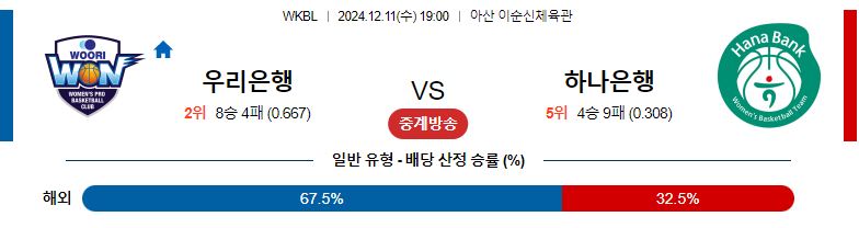 12월 11일 우리은행 하나원큐 경기중계